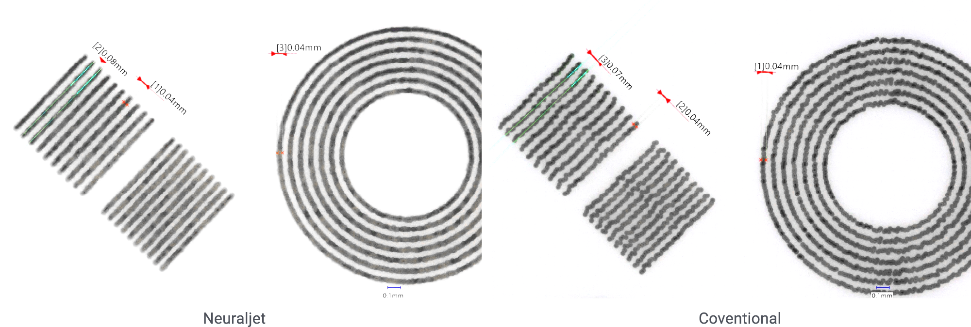NeuralJet®の制御によりインクジェット印刷は狙い通りの微細パターンを高い精度で形成することが可能となり、常に安定した生産品質を提供します。