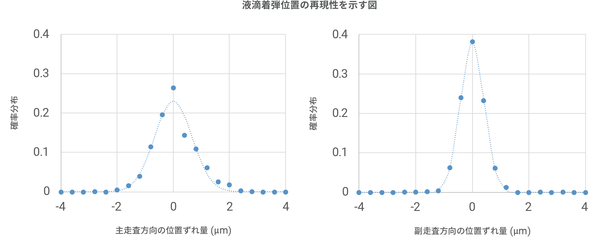 1: 弊社名古屋工場に設置されている量産用大型装置では繰り返し着弾位置精度(σ)は主走査方向0.75μm、副走査方向0.44μmを達成しています。