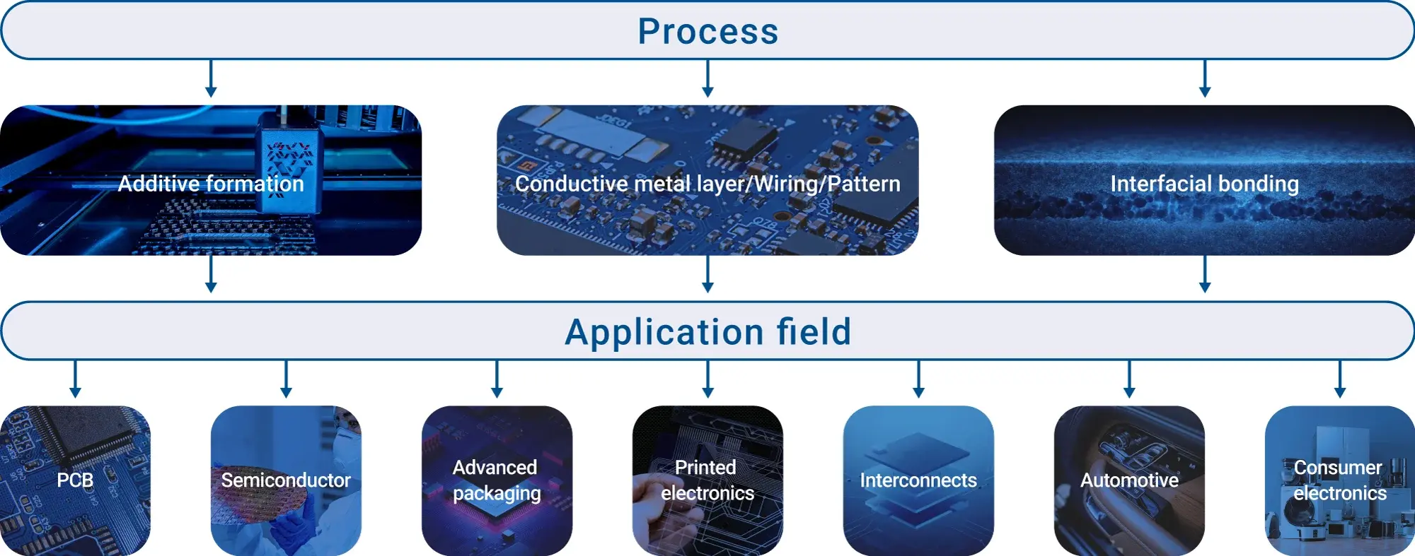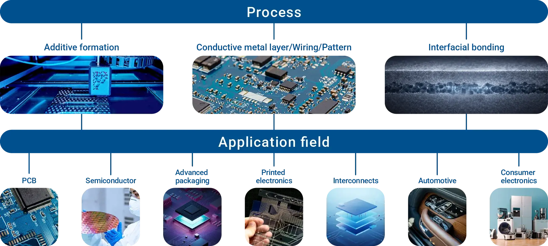 Across numerous fields in the electronics industry, our copper nanofiller, primer, and inkjet equipment unlock innovative potential for a wide array of products and solutions: