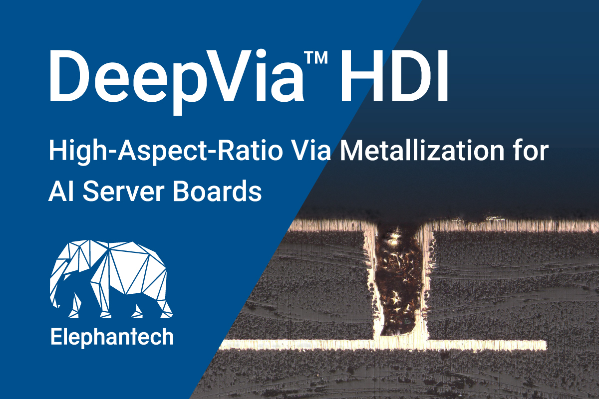 Elephantech announced the successful development of DeepVia™ HDI, a high-aspect-ratio microvia metallization solution based on its proprietary copper nanoparticle ink and inkjet printing equipment.