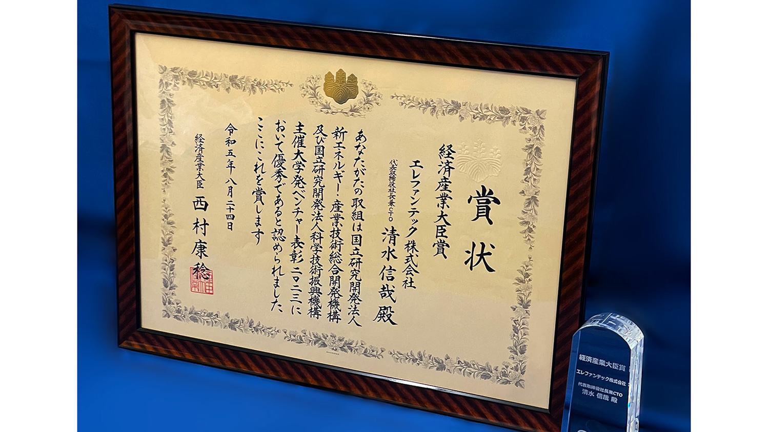 Elephantech was awarded the “METI(Minister of Economy, Trade and Industry) Award” in the “Award for Academic Startups 2023” hosted by the Japan Science and Technology Agency (JST) and the New Energy and Industrial Technology Development Organization (NEDO).