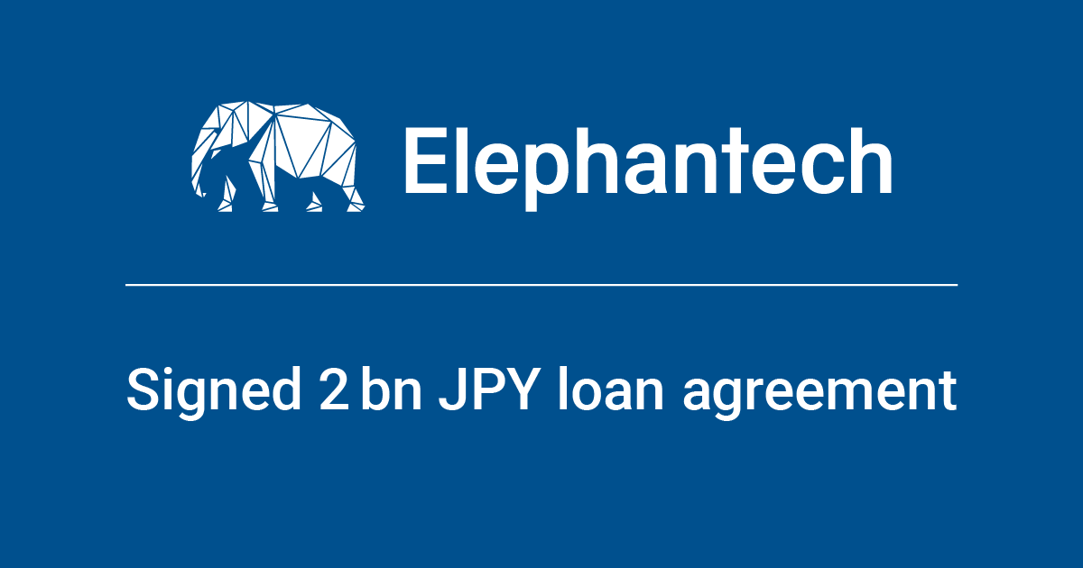 Elephantech Inc is pleased to announce that it has recently signed a loan agreement for a total of two billion yen by utilizing the Innovative Technology Research Results Utilization Facilitation Debt Guarantee System provided by the Independent Administrative Institution, Organization for Small & Medium Enterprises and Regional Innovation, JAPAN .