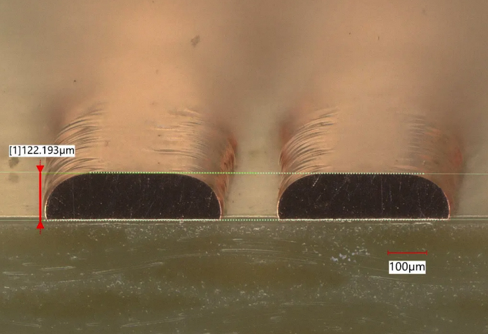 With the newly developed process, we can now achieve copper film thicknesses in the 100μm range through electroplating. As copper prices continue to rise steadily, the economic rationality of forming copper only where needed through plating increases as the copper thickness increases.
