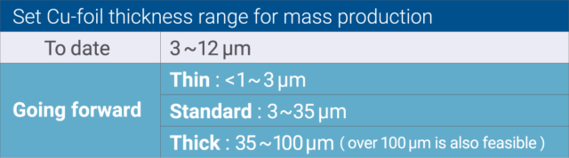 - Thick copper-foil FPCs are engineered to meet the high-current transmission demands in power electronics arena such as automotive and industrial equipment. Several projects of introducing mass production for various applications are currently underway.