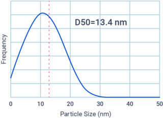 Particle size distribution measurement resultSynthesized using Elephantech’s proprietary technology developed over years of R&D, the newly released copper nanofiller consists of ultra-fine, uniformly produced particles averaging 15 nm in size. It exhibits exceptional dispersion stability for over 6 months. In addition to storage stability, the material also enables simplification of process by allowing low-temperature wet reduction at 60℃.