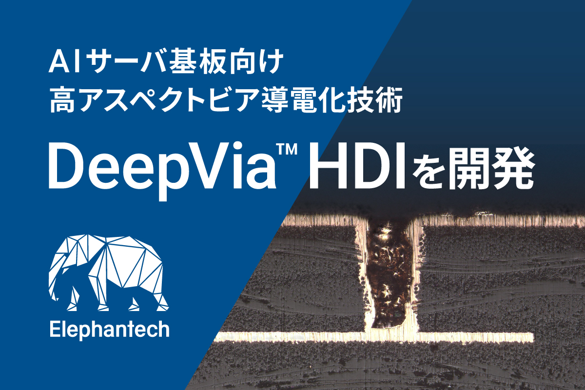 エレファンテック、AIサーバ基板向け高アスペクトマイクロビア導電化ソリューションDeepVia™ HDIを開発 – AR3以上の超高アスペクトビアも実現し、AIコンピューティングを加速 –