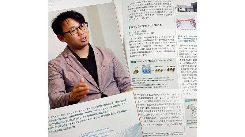 株式会社 図研が発行する情報誌 from Z 第31号に、プリンテッド・エレクトロニクスが拓くサステナブルなプリント基板製造 というタイトルで弊社杉本のインタビューを掲載いただきました。 東大発スタートアップのエレファンテックは、インクジェットプリンターとめっき処理の合わせ技で、基材に回路をプリントする技術の量産に世界で初めて成功した。同社の創業時は、プリンテッド・エレクトロニクスの開発は下火ともいわれていた。それでも、必ずや新しいモノづくりの扉を拓くという不屈の信念で結実させた。 今、エレファンテックが意欲的に取り組むのが、サステナブル時代のモノづくりだ。彼らが描く新しい電子基板設計・製造の形とは? 取締役副社長の杉本雅明氏に話を聞いた。 (記事より引用:Webで該当記事を読む) 「from Z」とは 図研が発行するお客様向けの情報誌で、2008年4月に創刊いたしました。 図研のお客様を中心とした電機メーカ、自動車メーカ、および関連する製造業各社様の製品開発関連部門の方を対象とした記事を中心に、昨今の製造業における課題や、それらに対する多様な視点・切り口でのご意見などを紹介しています...