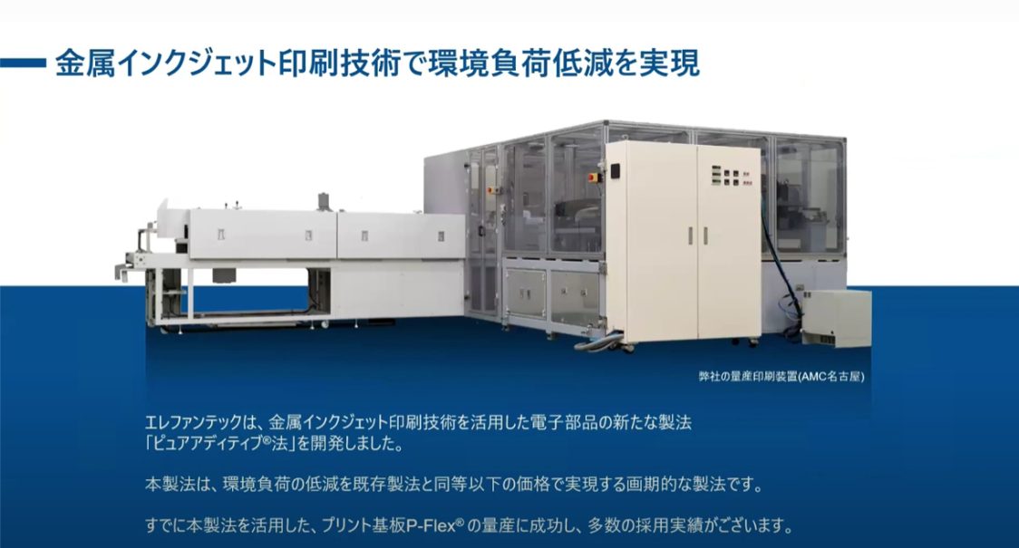 エレファンテックは、2023年12月13日(水)~ 2021年12月15日(金) 10:00-17:00 東京ビッグサイトサイトで開催される SEMICON Japan2023 に出展いたします。 従来のエッチング等で製造するフレキシブル基板と違い圧倒的に環境に優しい独自製法(ピュアアディティブ®法)により作成したフレキシブル基板(P-Flex®)のサンプルを展示します。実際に目で見て手で触って従来のフレキシブル基板との違いを確かめて下さい。 SEMICON Japan2023 内容詳細 会 期 2023年12月13日(水)~ 2023年12月15日(金) 10:00-17:00 会 場 東京ビッグサイト 展示ブース 小間番号2931 URL https://www.semiconjapan.org/jp FLEX Japan 2023 カンファレンス『プリンテッドエレクトロニクスによるサステナビリティ新時代』 12月13日(水)13:50 からのFLEX Japan 2023 カンファレンスでは、弊社杉本がセッションチェアとして登壇予定です。皆様のご参加をお持ちしております。 サステ...