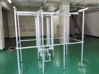 試作は270の高さが確保できる前提で行っていました。天井高が低いからと言う理由で外注をやめて内製に切り替えたこの搬送装置で、あと30cm下げられるでしょうか?