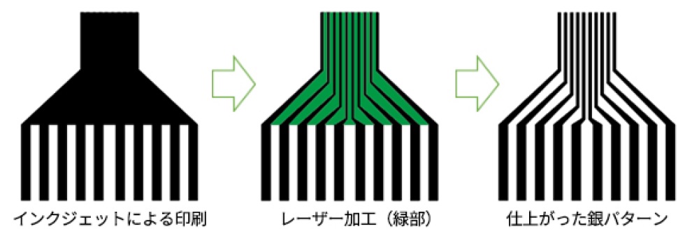 fabcross(2021年05月14日付)に「インクジェットとレーザーの併せ技で微細かつスピーディー、エレファンテックのFPC新製品」 というタイトルで記事が掲載されました。 インクジェット印刷だけでは精度の追い込みが足りなかった個所をレーザーで追加工することで、「型レス」という利点はそのままで、高精細なパターン形成が量産に耐え得るスピードで実現できるとしている。一方、レーザー加工の難点であった加工スピードも、インクジェット印刷による前加工で克服している形である。 従来製品では最小線幅と線間(L/S)が200/200µmまでであったところ、新製品では100/100µmまで対応可能になった。今後の改良で、50/50µmまで対応していく予定だ。 (記事より引用) メディア掲載一覧 ▶ fabcross 掲載一覧 ▶ メディア記事に掲載された記事を読む
