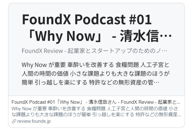 【メディア掲載紹介】FoundX:FoundX Podcast #01「Why Now」 – 清水信哉さん