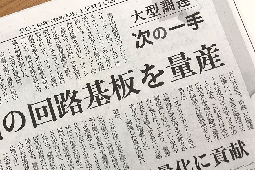 【メディア掲載紹介】日経 xTECH:インクジェットで作るプリント基板にセイコーエプソンらが18億円出資する3つの理由